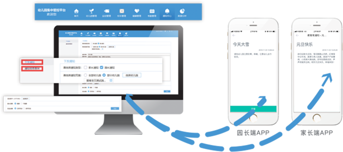 一鍵下發(fā)通知給幼兒園和家長,可查詢已發(fā)送或未發(fā)送的通知列表,發(fā)送通知一個(gè)工作日后,可根據(jù)通知查看率選擇是否給未查看的用戶二次推送。