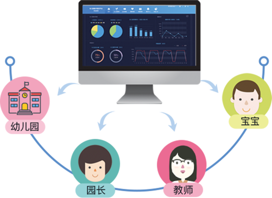 首頁大數(shù)據(jù)集中展示,可查看園所人員規(guī)模、出勤情況以及寶寶健康數(shù)據(jù)等,對下轄幼兒園整體狀況有更直觀的了解,全方位輔助管控和決策。